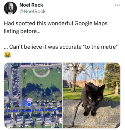 La magia de un mapa colaborativo En una época donde internet y las redes sociales suelen ser un campo de batalla constante, el “Gato Negro Amigable” de Cowper Road nos demuestra cómo las aportaciones de los usuarios pueden llevar a descubrimientos increíblemente sanos y divertidos. Alguien pensó que ese gato era tan especial que merecía su propio lugar en el mapa del mundo, y Google Maps le dio la razón.